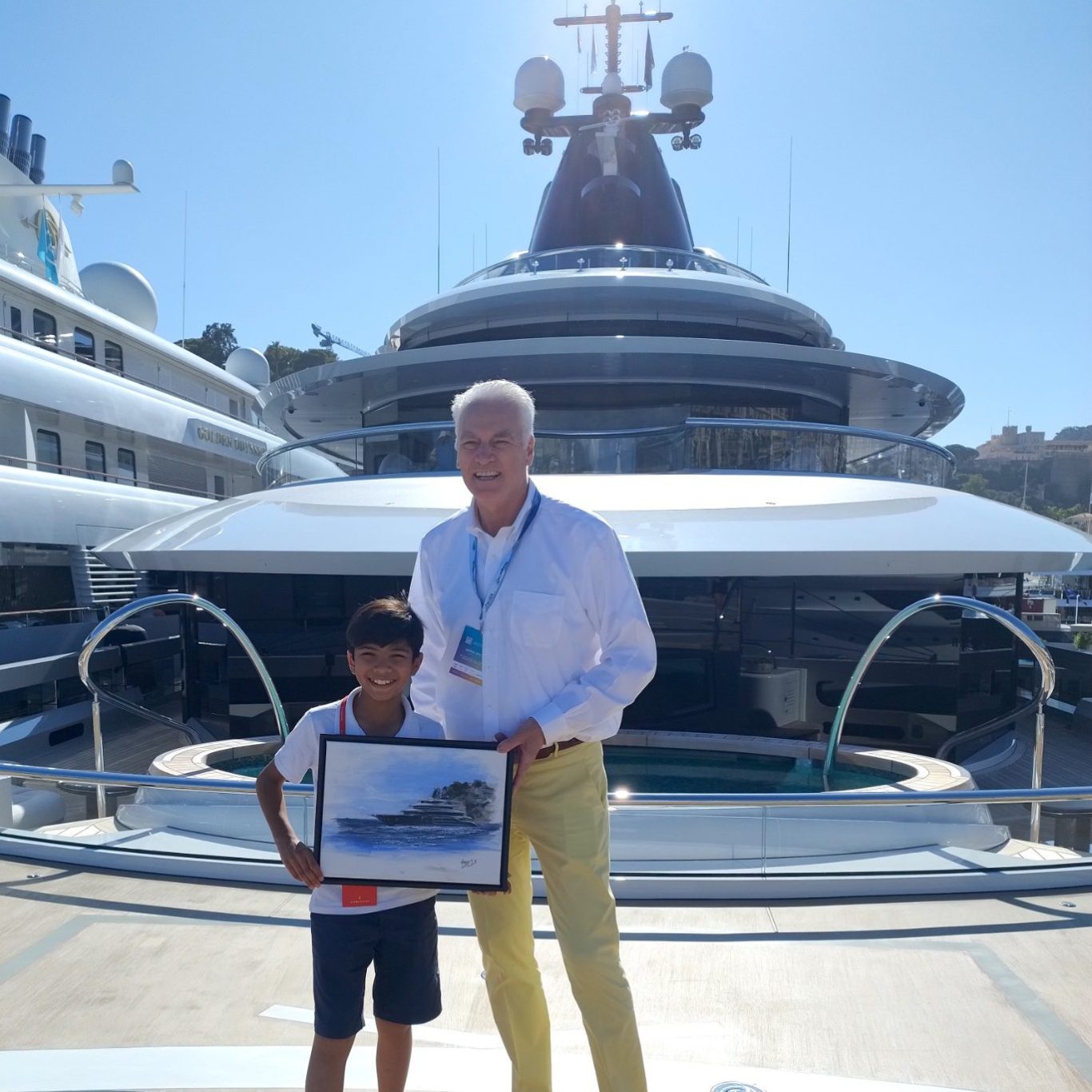 At the Monaco Yacht show in September 2024, Aran had the pleasure of being invited onto the 122 metre Superyacht 'Kismet' which he had painted and presented to Peter Lürssen.
