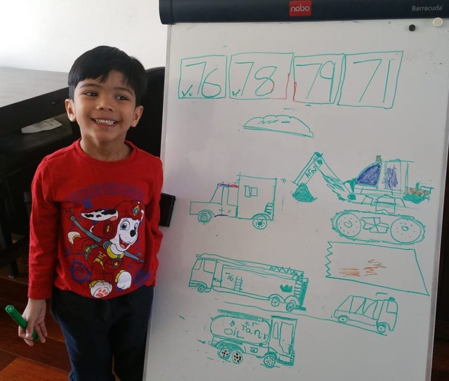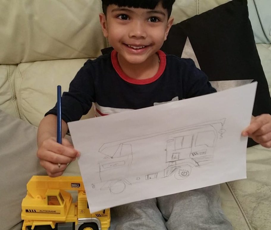 Having a range of toys from diggers, fire engines, crane trucks, he would draw them on a daily basis